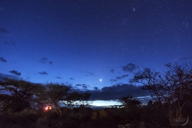 Le fait que Vénus soit facilement visible à l’oeil nu montre en effet que la luminosité ambiante a diminué, car le Soleil est bien en dessous de l’horizon. Il faut en effet que le Soleil soit suffisamment bas sous l’horizon pour que les autres astres, hormis la Lune, soient visibles, puisque leur luminosité est bien plus faible. De nuit, plus le Soleil est éloigné de l’horizon, plus l’obscurité est profonde, et plus il est facile d’observer les astres dont la luminosité est faible.