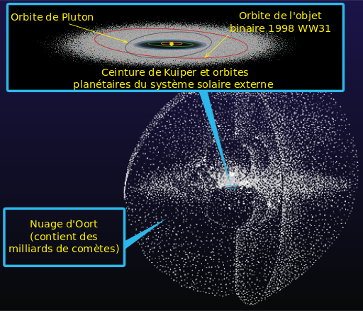 Toutefois, on y trouve, en quantité anormale, beaucoup de glace et de poussière. C’est de ce nuage que partent les comètes qui viennent parfois tourner autour du Soleil.